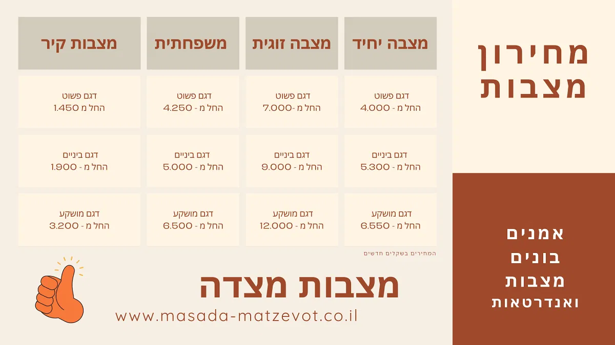סוגי מצבות אותן בונה וטווח מחירים מומלץ: |