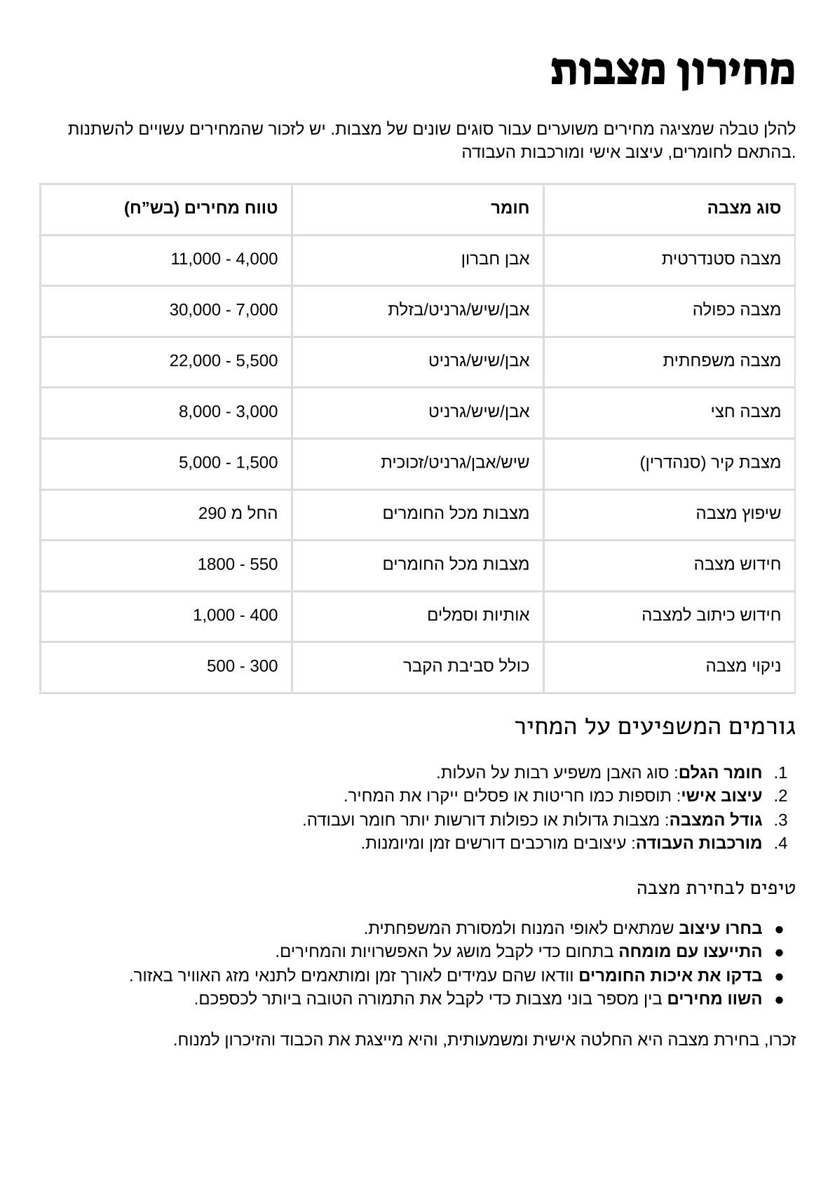 מחירון מצבות - טווחי מחירים והסברים ברורים